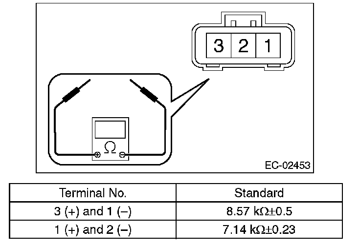 CAUTION: Pay attention to polarity when measuring the resistance in fuel tank pressure sensor.