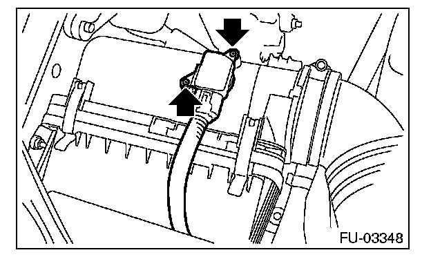 2. Disconnect the connector from the mass air flow and intake air temperature sensor, and remove the mass air flow and intake air temperature sensor.