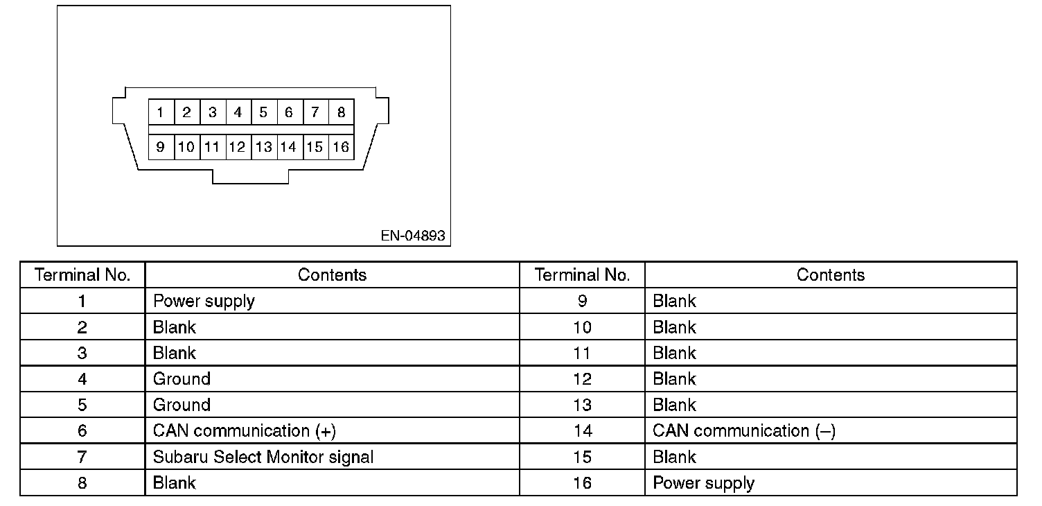 Data Link ConnectorNOTE: This connector is used for Subaru Select Monitor.