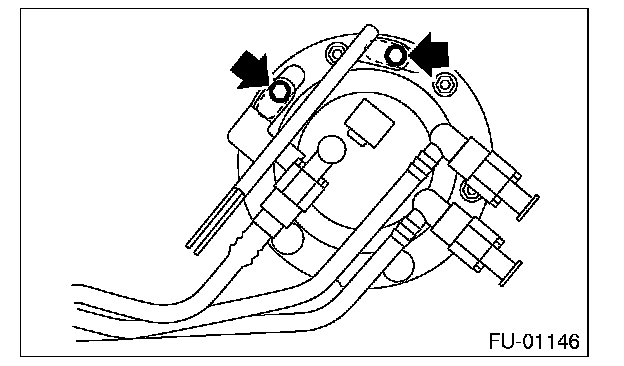 9. Remove the bolts and nuts which hold fuel sub level sensor to the fuel tank.
