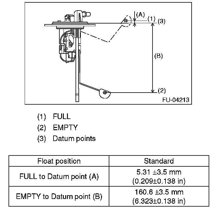 Measure the fuel sub level sensor float position.