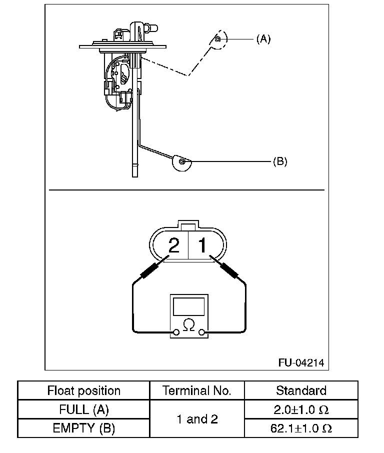 Measure the resistance between fuel sub level sensor terminals.