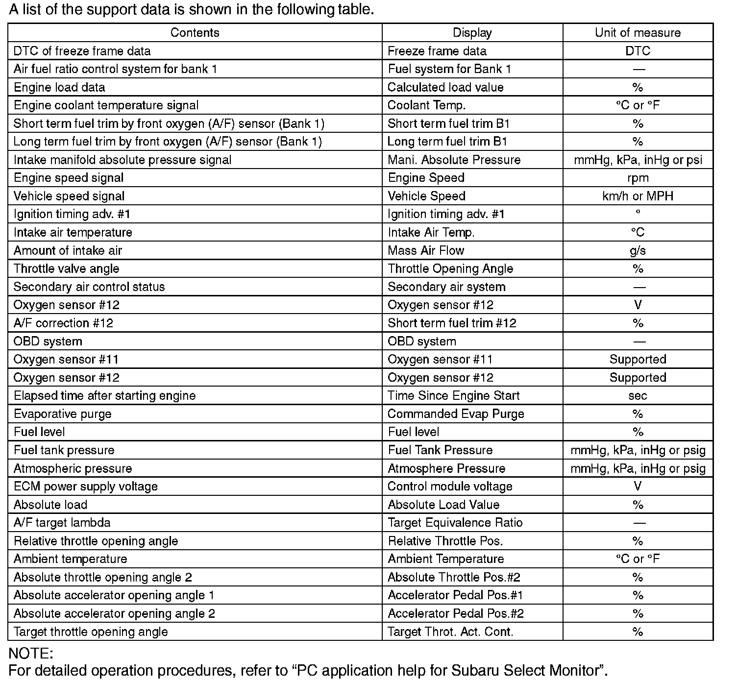 NOTE: For detailed operation procedure, refer to the "PC application help for Subaru Select Monitor".