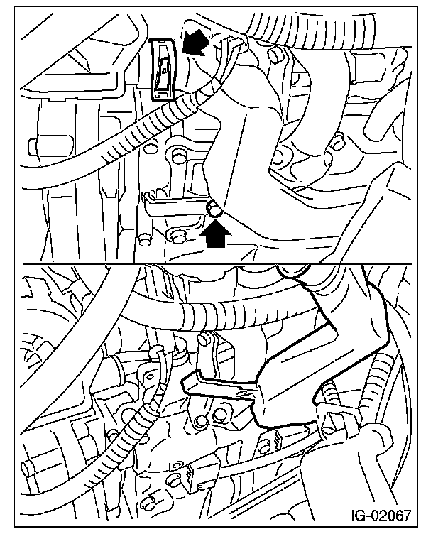 3. Remove the bolts that secure the air duct to the rocker cover LH, and lift the air duct.