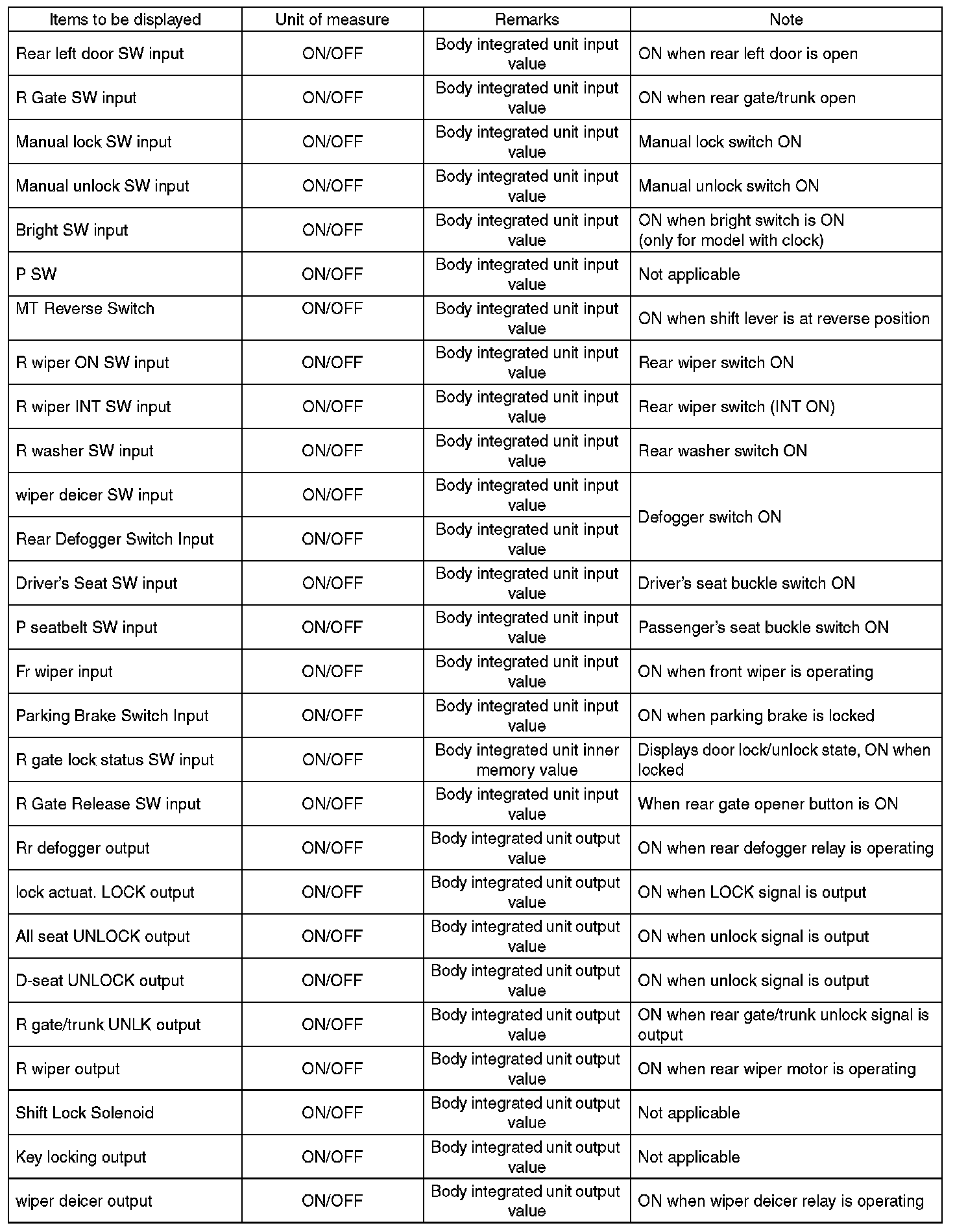 - Be sure to register immobilizer if body integrated unit is replaced with a new part. (models with immobilizer)