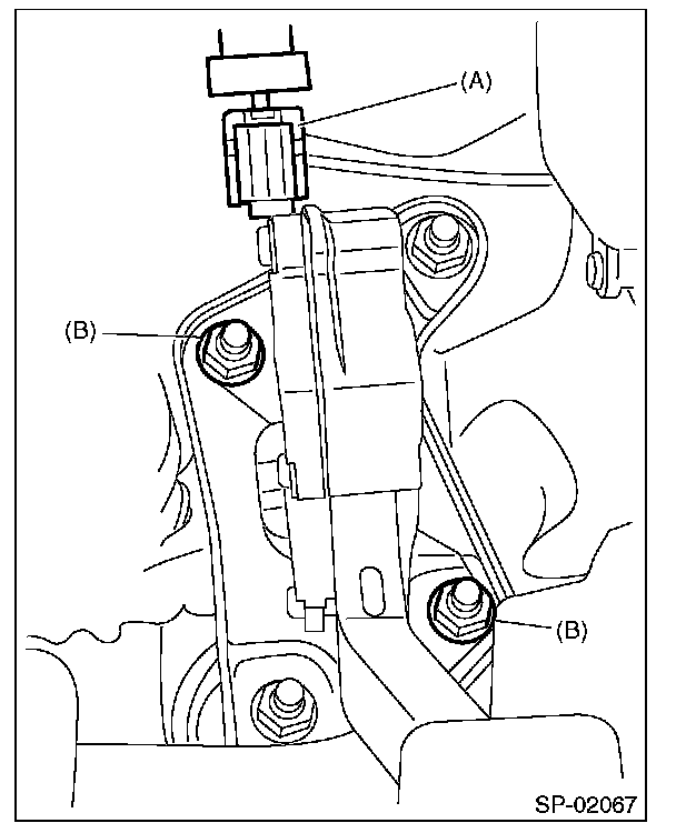 3. Remove the nut (B) securing accelerator pedal assembly, and remove the accelerator pedal assembly.