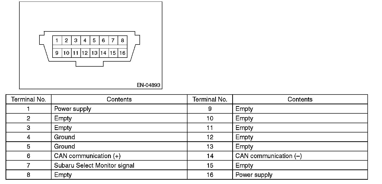 NOTE: This connector is used for Subaru Select Monitor.