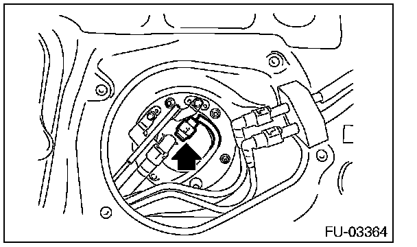 - Align protrusion (B) of the fuel sub level sensor to the cutout in the fuel sub level sensor upper plate.