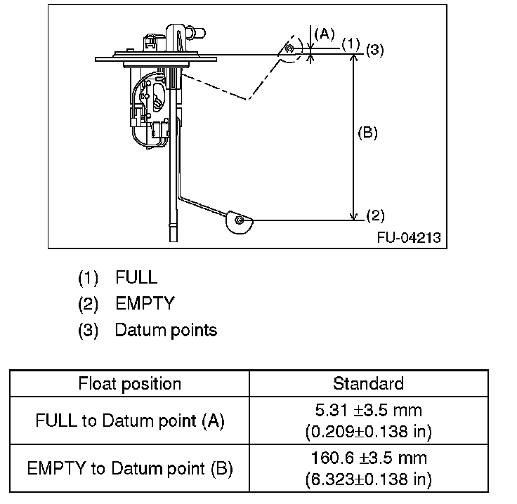 1. Measure the fuel level sensor float position.