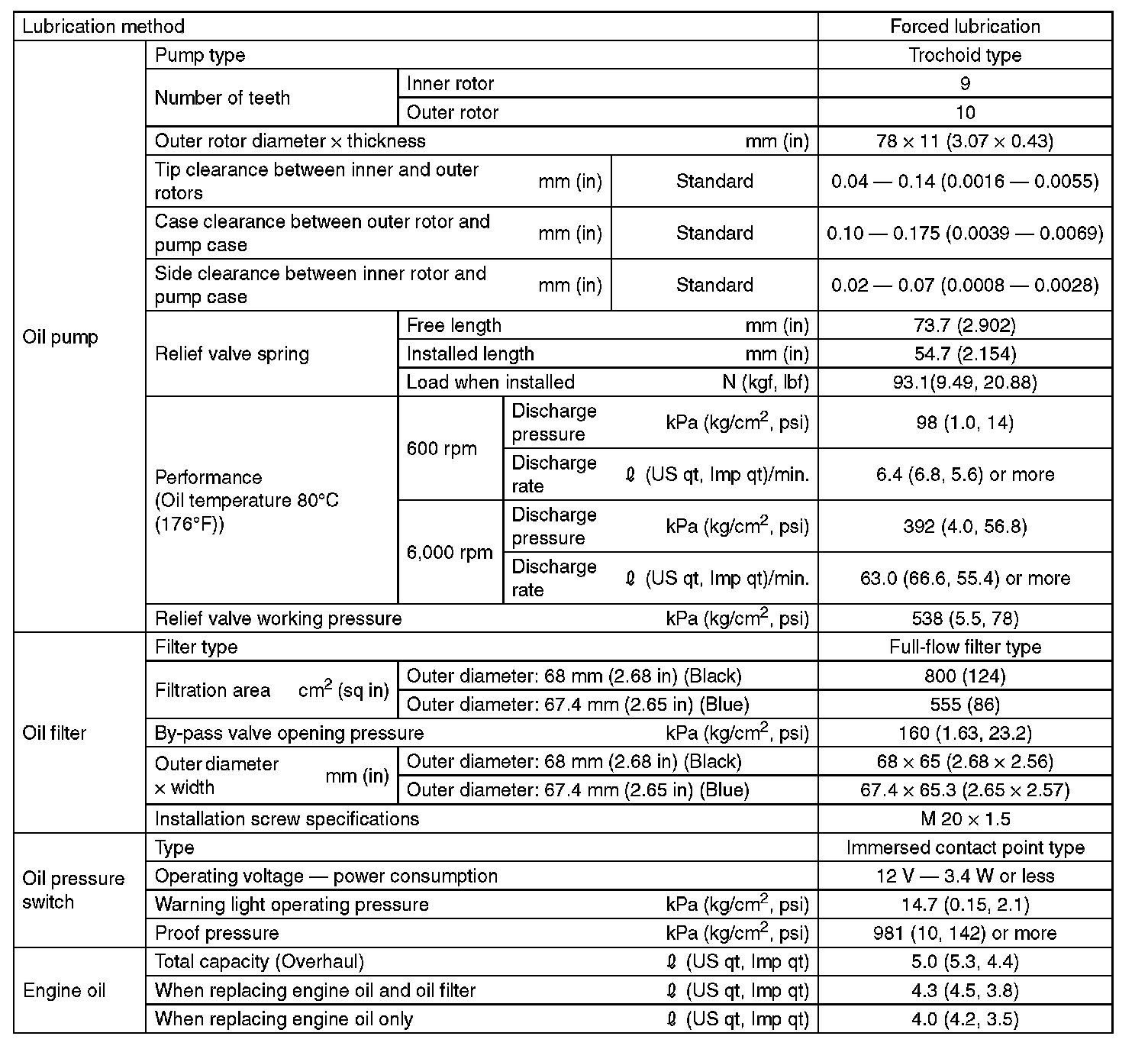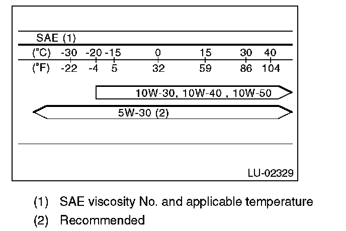 - If the vehicle is used in regions of high temperatures or in other severe environments, use oil with the viscosities shown below.
