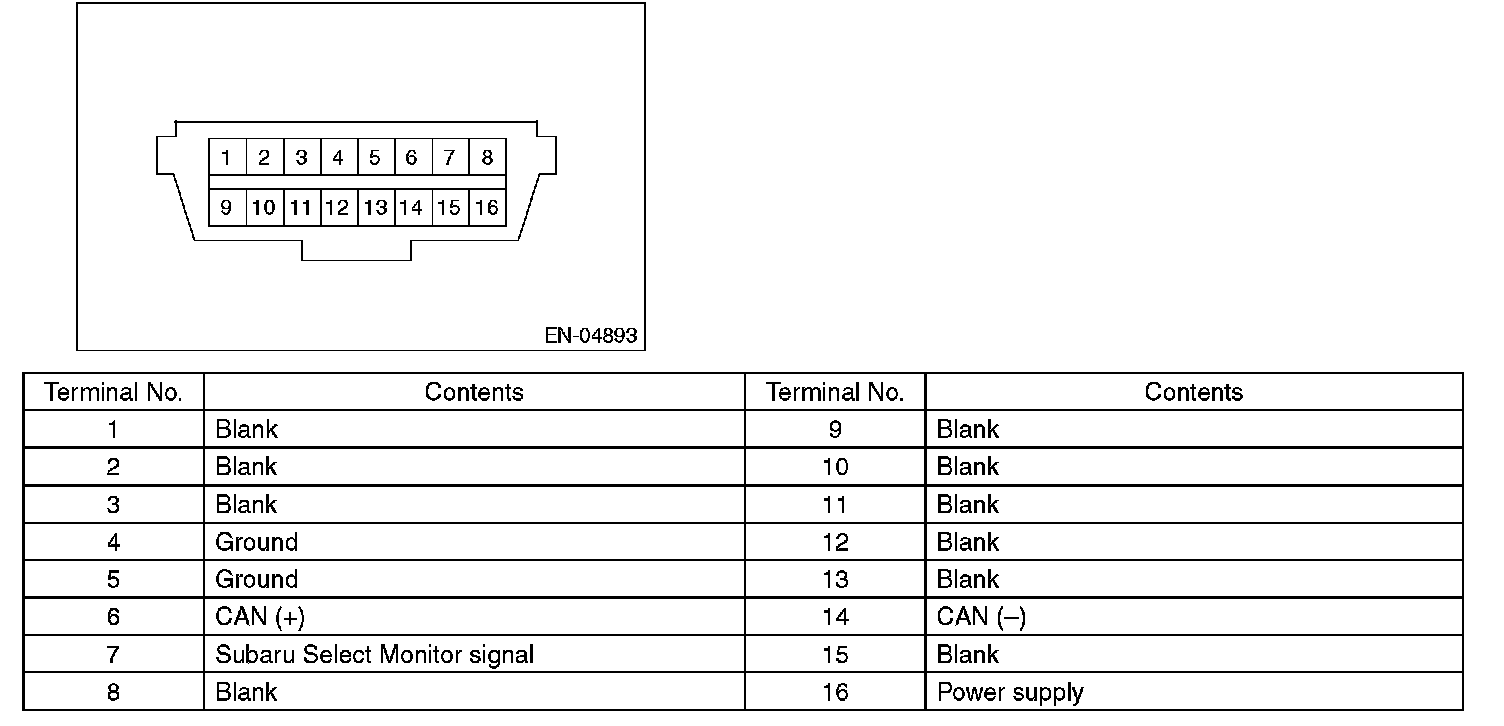 Data Link ConnectorNOTE: This connector is used for Subaru Select Monitor.