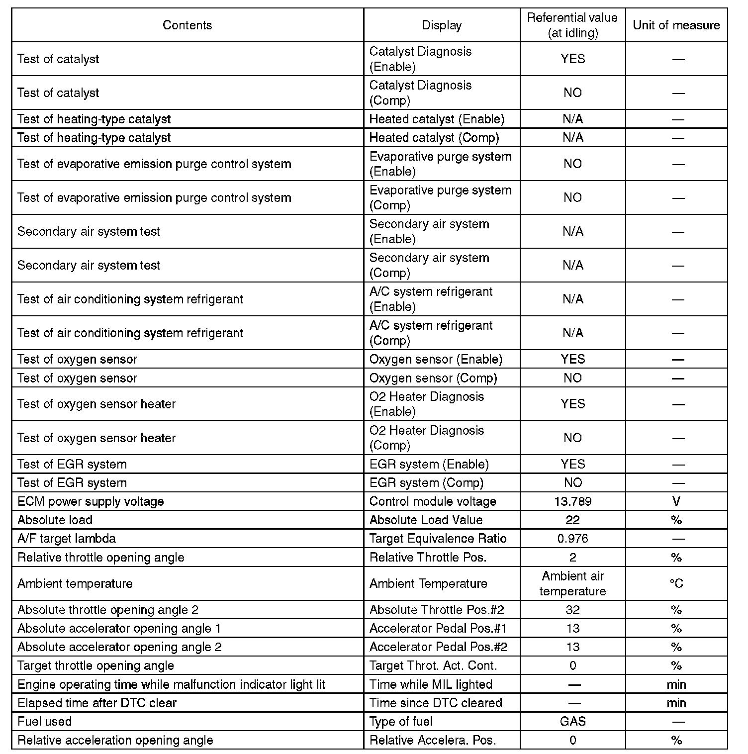 3. READ CURRENT DATA FOR ENGINE (OBD MODE)