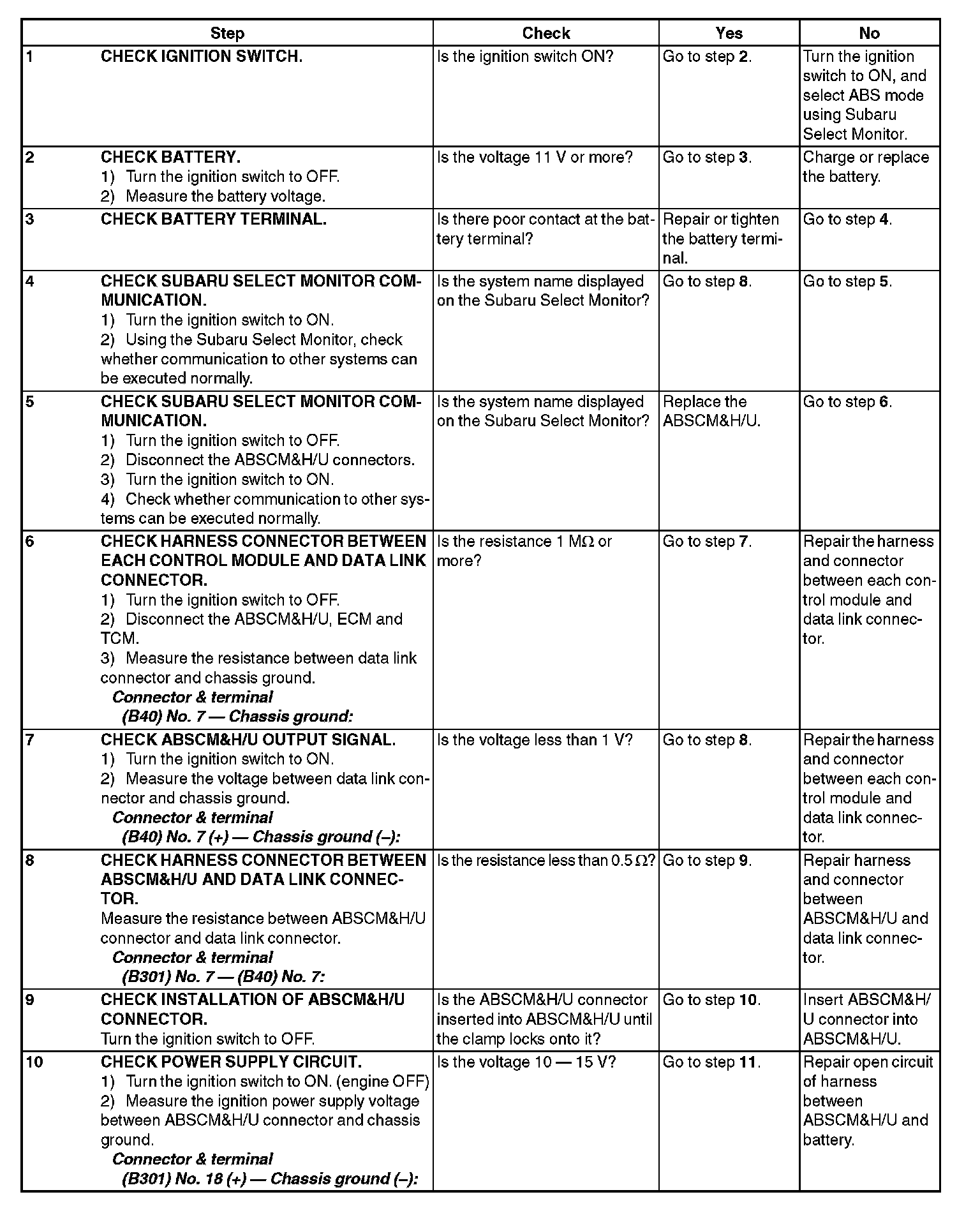 TROUBLE SYMPTOM: Communication is impossible between ABS and Subaru Select Monitor.