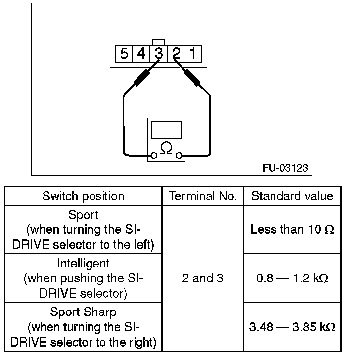 Measure the resistance between SI-DRIVE selector terminals.