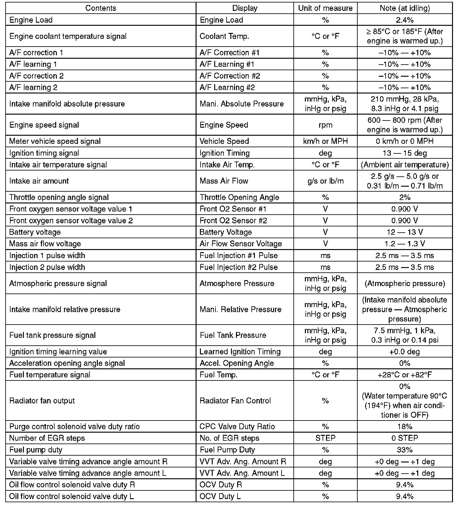 3. READ CURRENT DATA FOR ENGINE (OBD MODE)