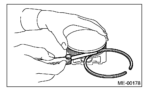 7. Measure the piston pin clearance at connecting rod small end. If the measured value is not within the standard, replace it with a new part.