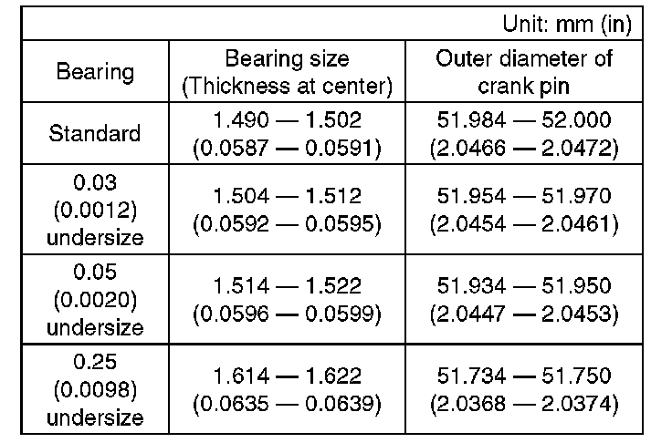 4. Inspect the connecting rod bearing for scar, peeling, seizure, melting, wear, etc.