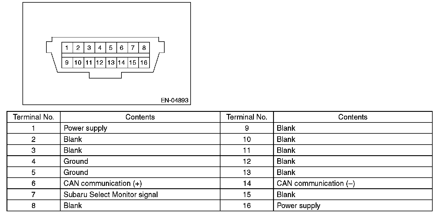 Data Link ConnectorNOTE: This connector is used for Subaru Select Monitor.