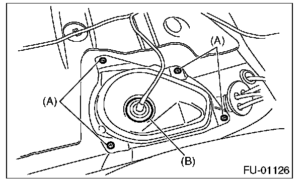 - Align the protrusion (B) of fuel sub level sensor with the cutout portion of fuel sub level sensor upper plate.