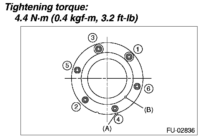 - Tighten the nuts and bolts to the specified torque in the order as shown in the figure.