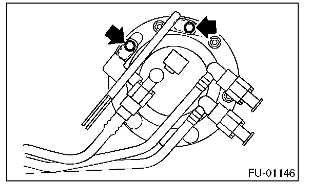 8. Remove the nuts and bolts which install fuel sub level sensor on fuel tank.