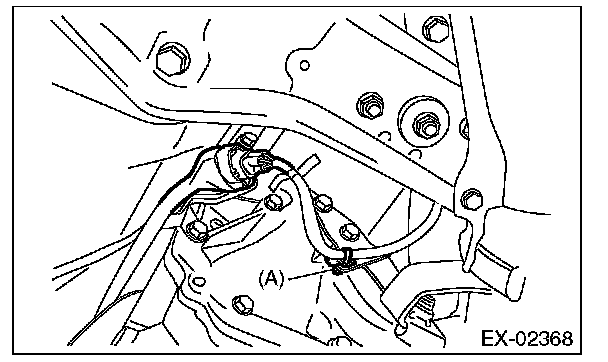 4. Remove clip (A) holding the rear oxygen sensor harness. (AT model)