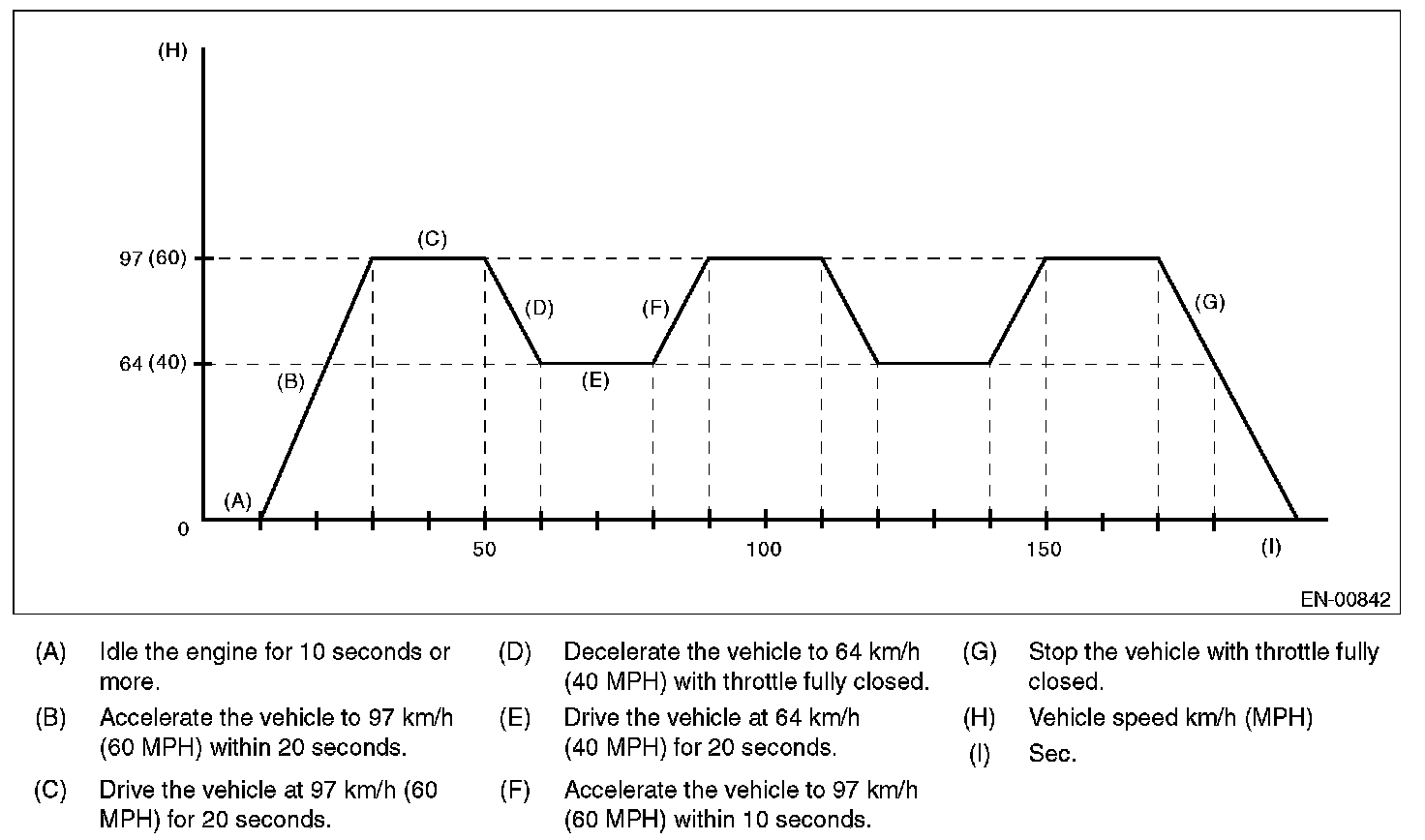 2. DRIVE CYCLE A - DRIVE THE VEHICLE WITH 80 KM/H (50 MPH) FOR 20 MINUTES, AND THEN IDLE THE ENGINE FOR A MINUTE)