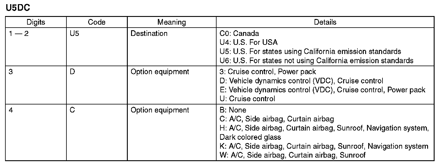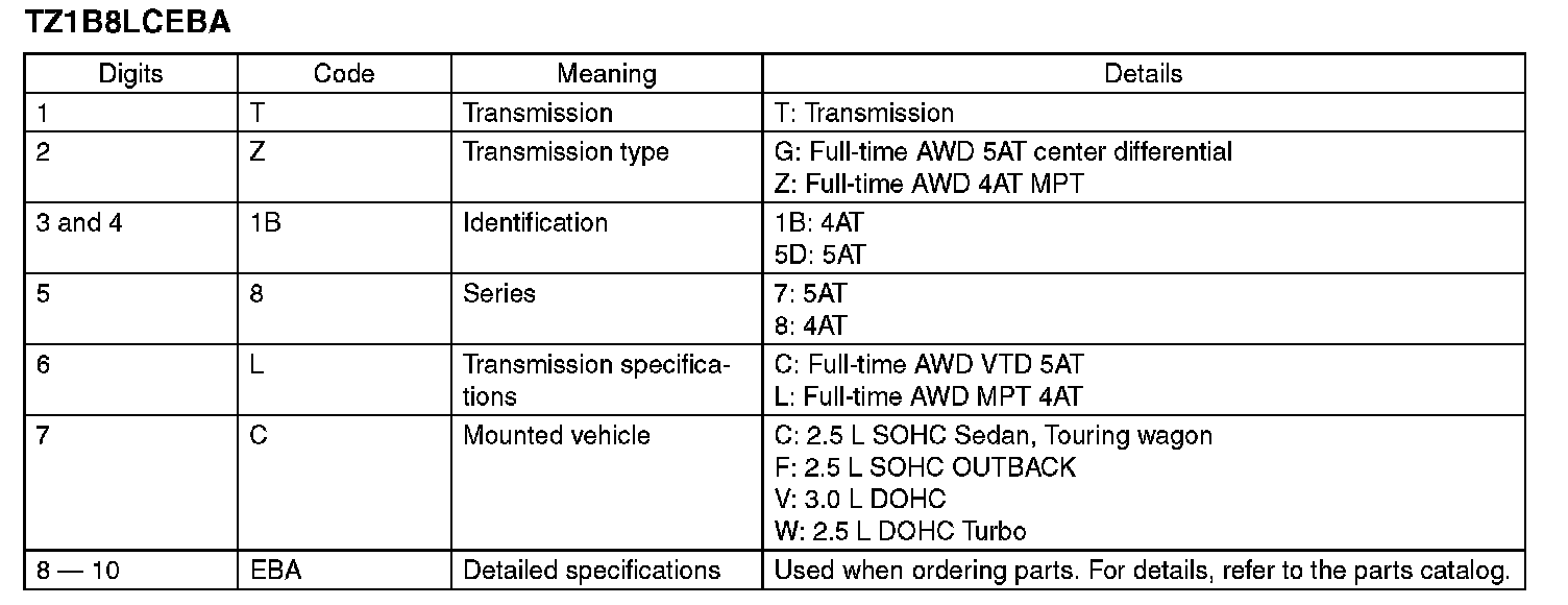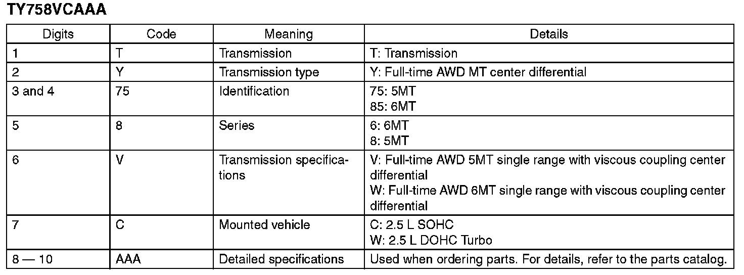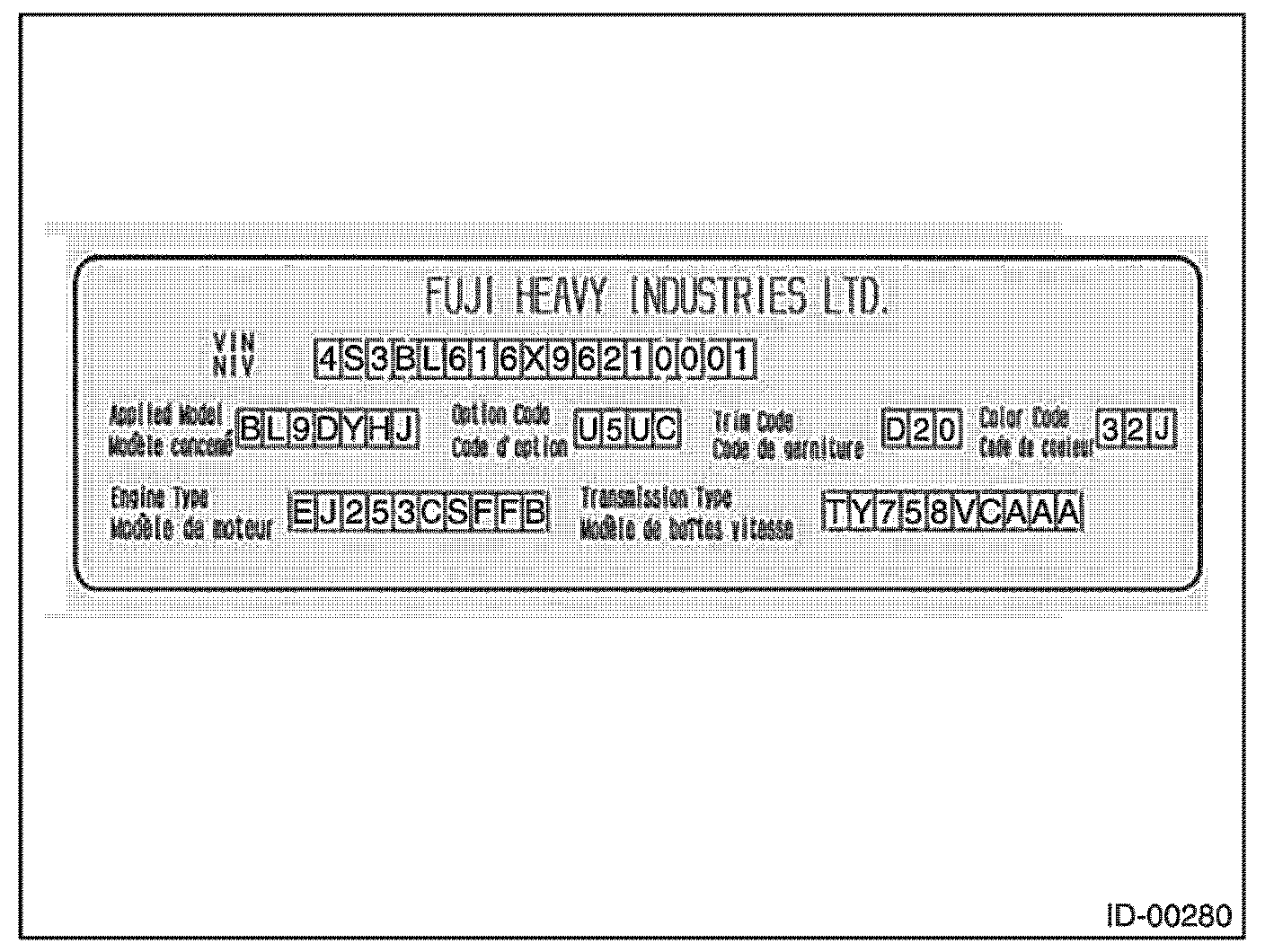 The model number plate indicates the type, V.I.N. applied model, option code, trim code, engine type, transmission type and the exterior color code. This information is helpful when placing orders for parts.