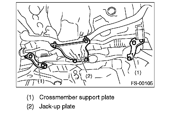NOTE: Tighten the small type crossmember support plate together with stabilizer bracket.
