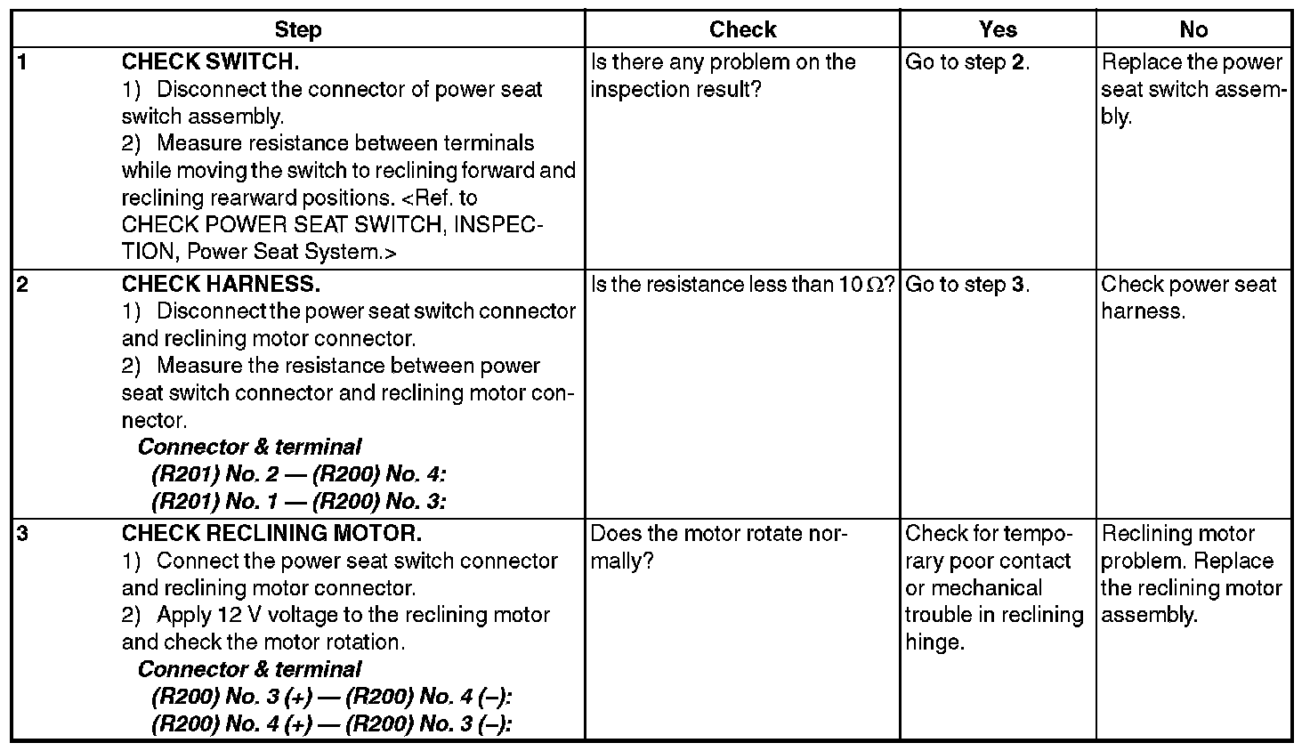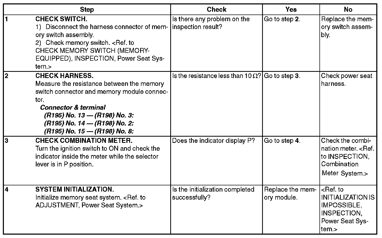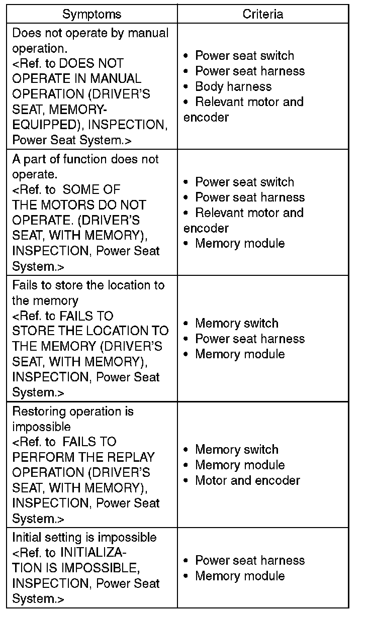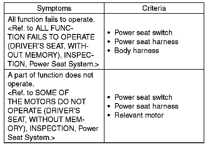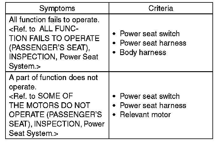 POWER SEAT SYSTEMINSPECTION