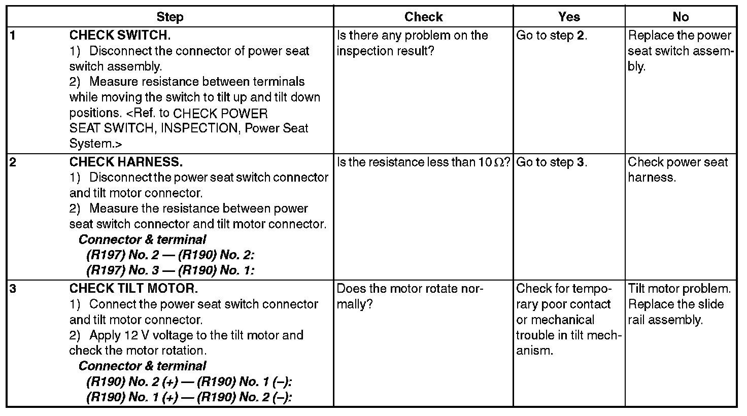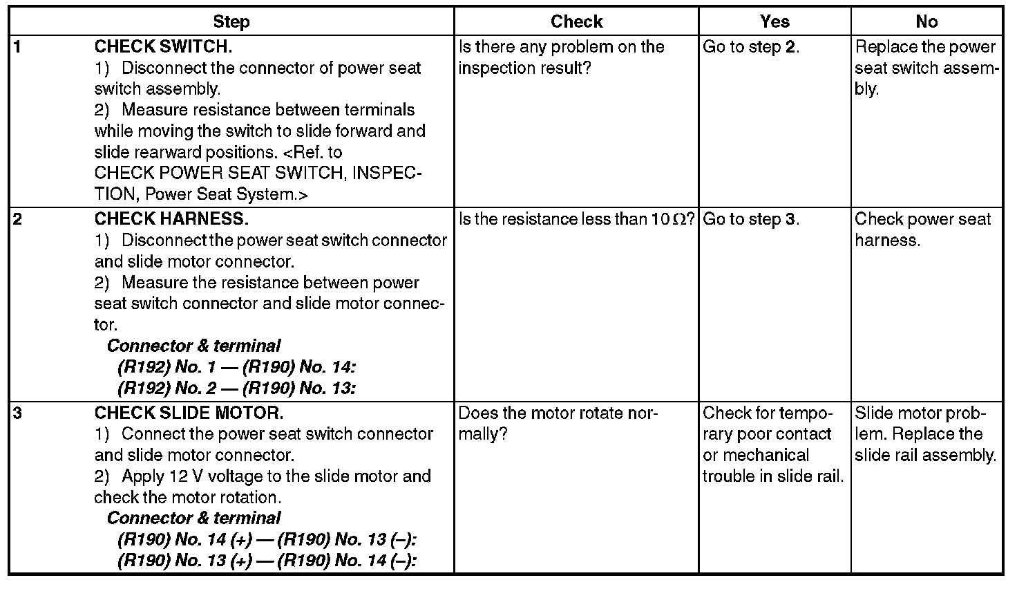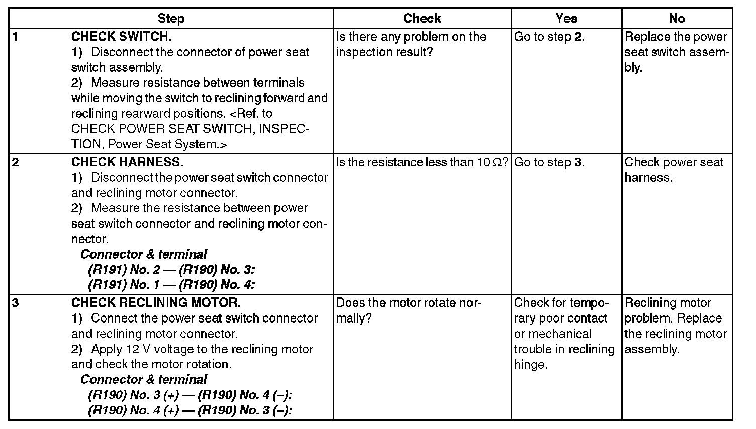 POWER SEAT SYSTEMINSPECTION