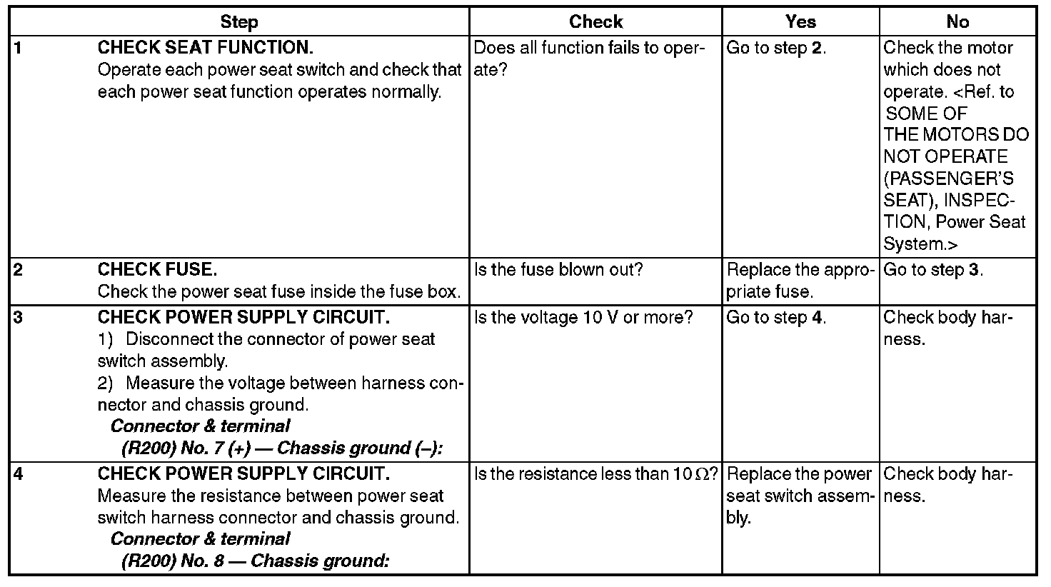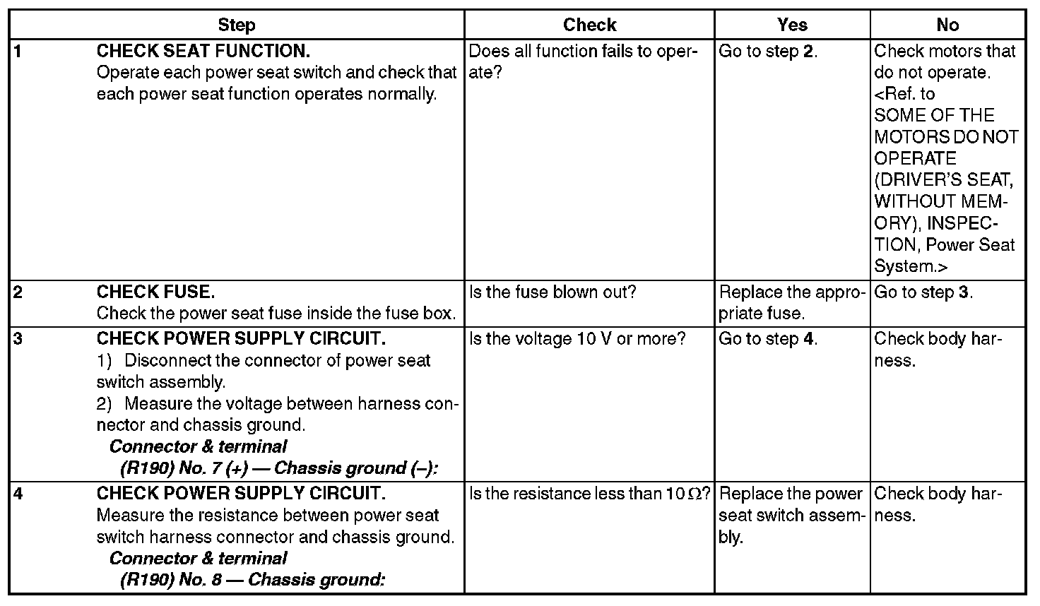 5. ALL FUNCTION FAILS TO OPERATE (DRIVER'S SEAT, WITHOUT MEMORY)