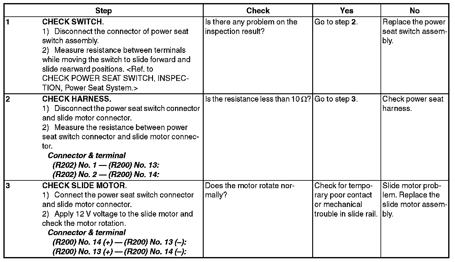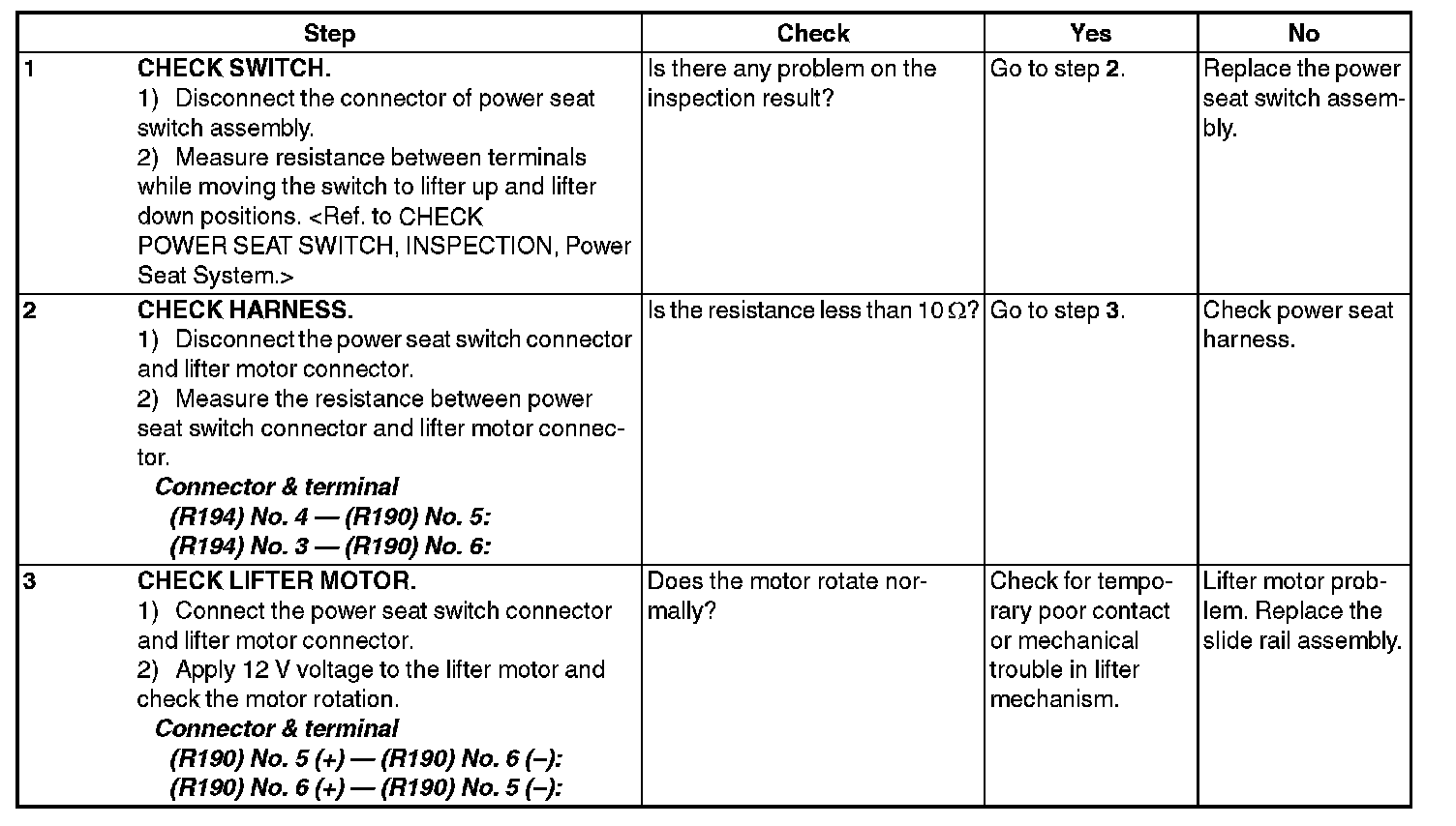 3. CHECK POWER SEAT SWITCH