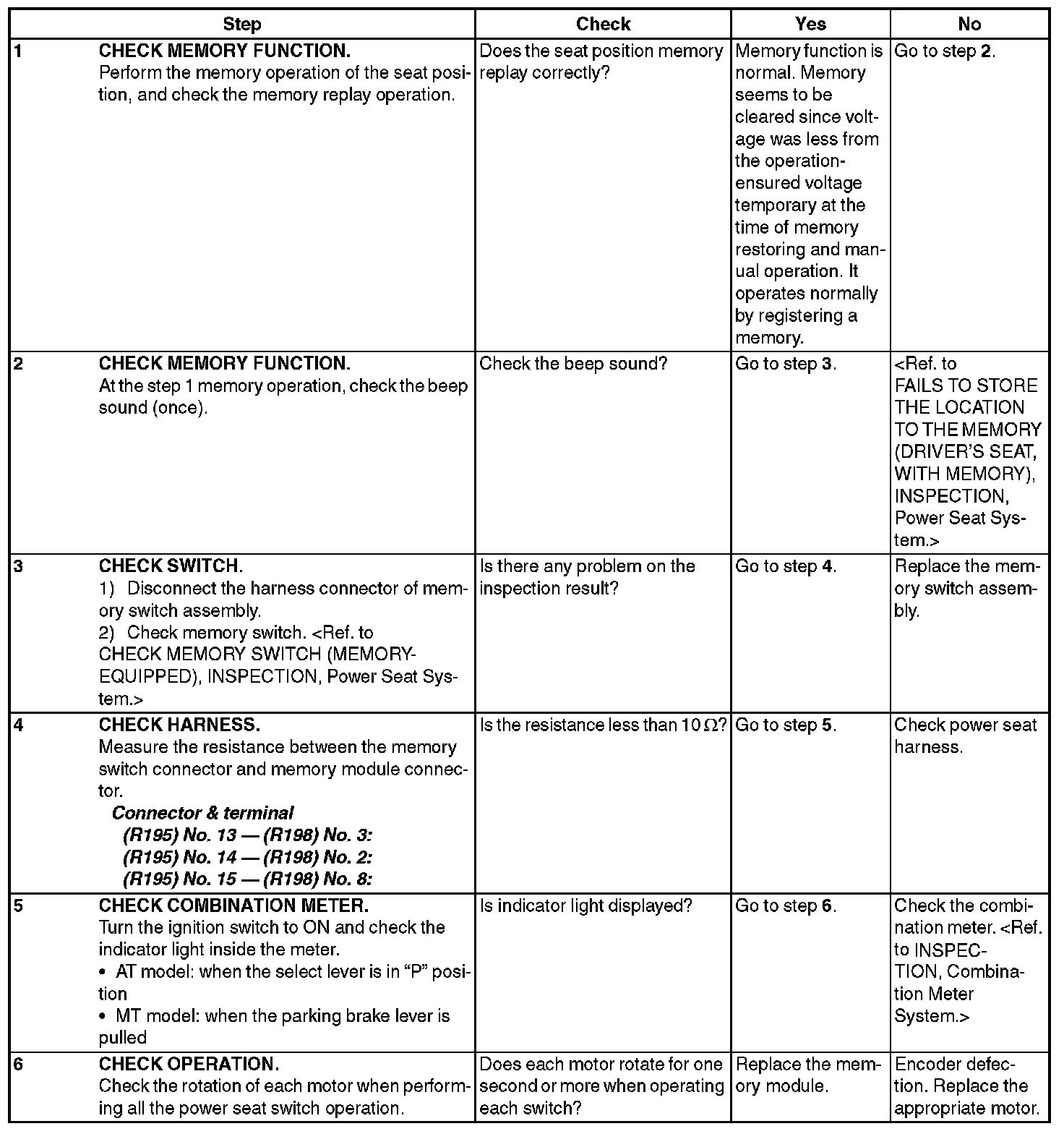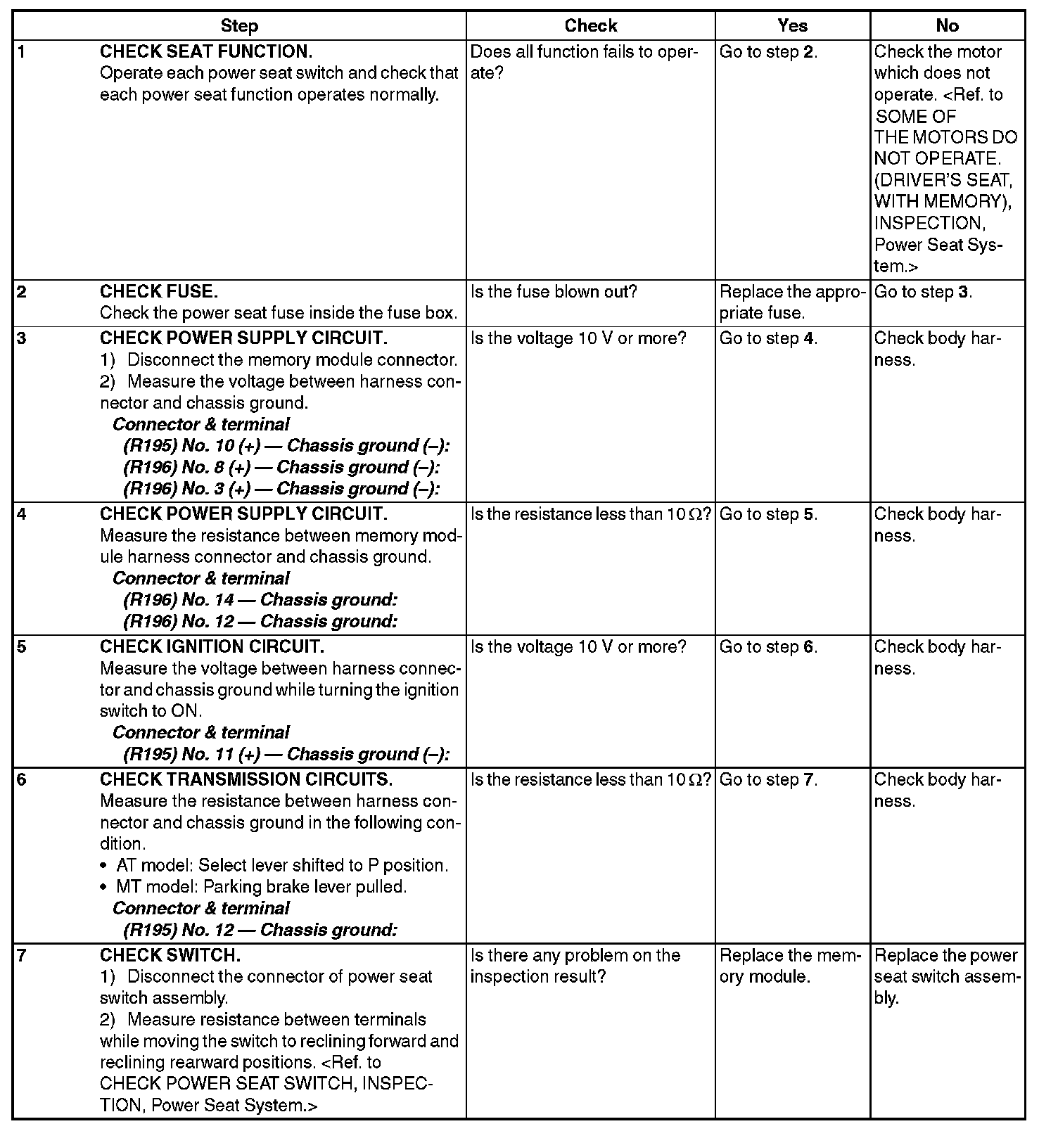 7. DOES NOT OPERATE IN MANUAL OPERATION (DRIVER'S SEAT, MEMORY-EQUIPPED)