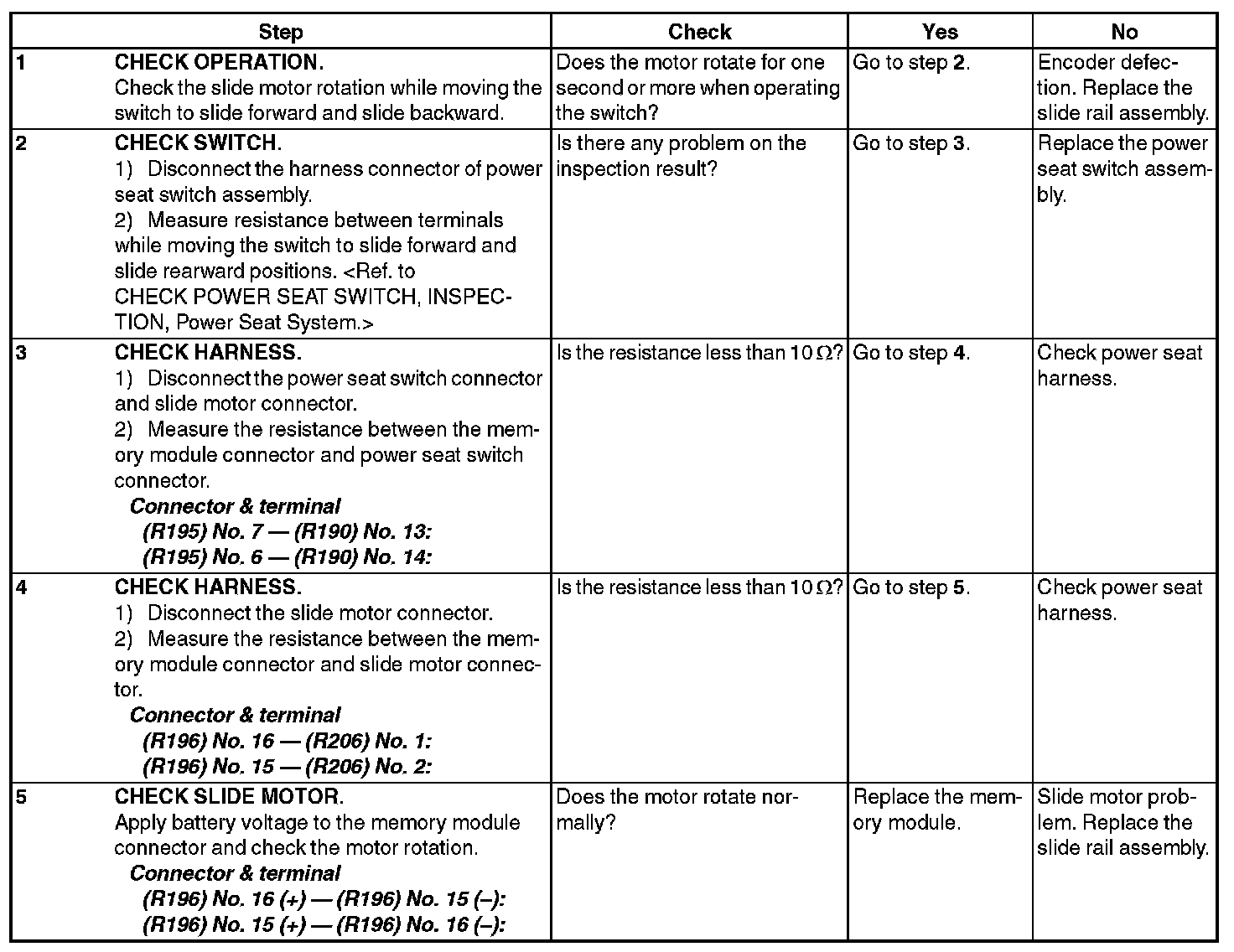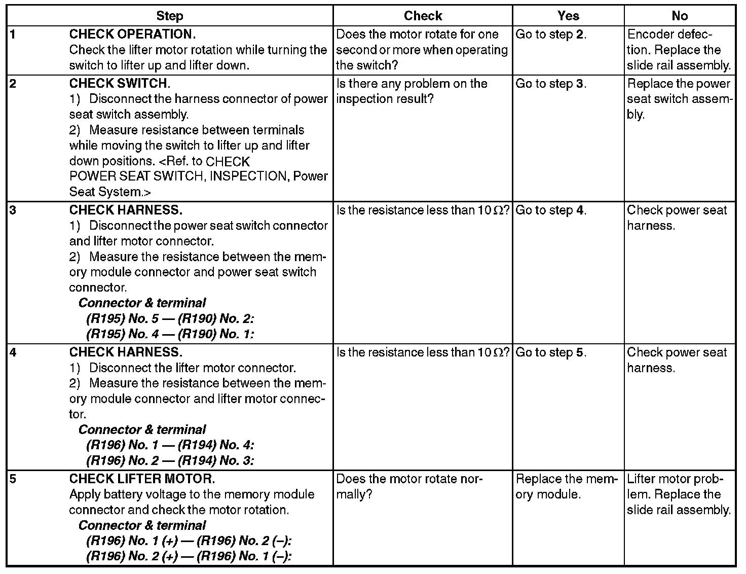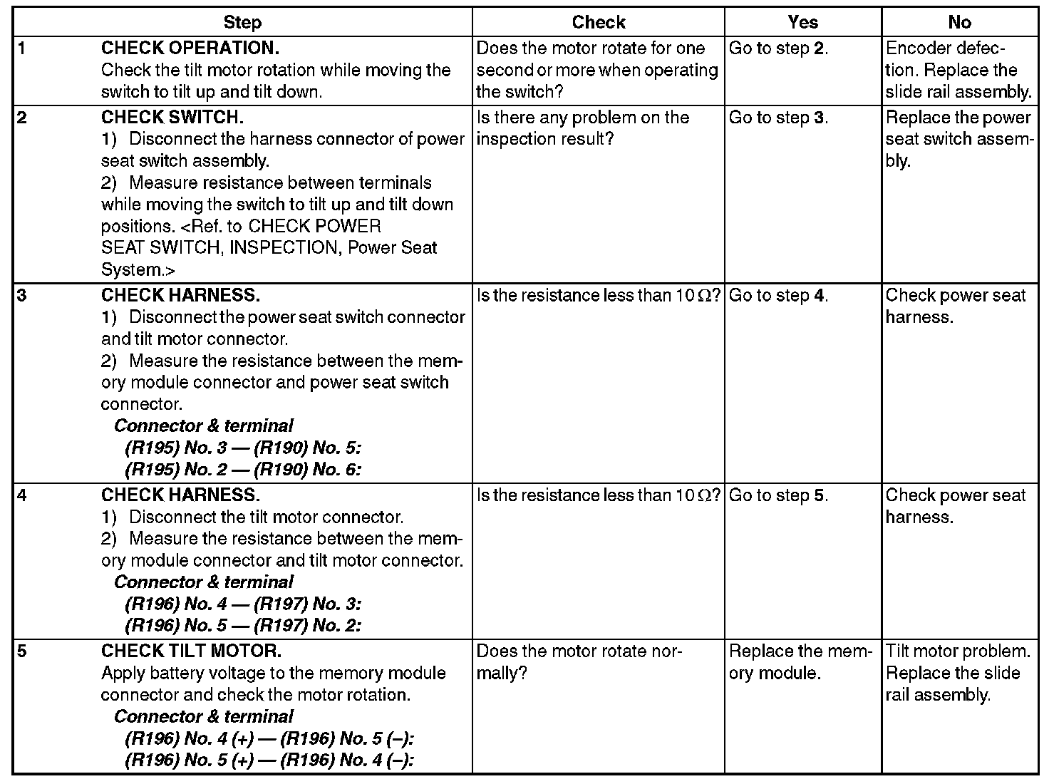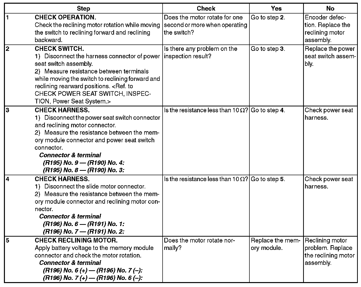 6. SOME OF THE MOTORS DO NOT OPERATE (DRIVER'S SEAT, WITHOUT MEMORY)