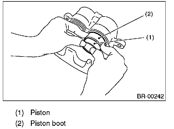 3. Apply a coat of brake fluid to the inner surface of cylinder and the entire outer surface of the piston.