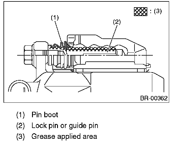 7. Apply grease contained in the piston seal kit to the lock pin, guide pin outer surface, cylinder inner surface, and boot grooves.