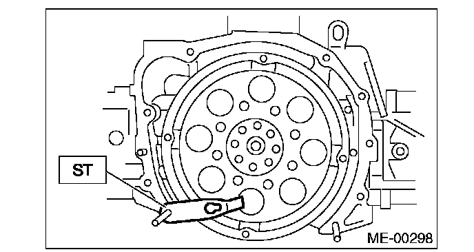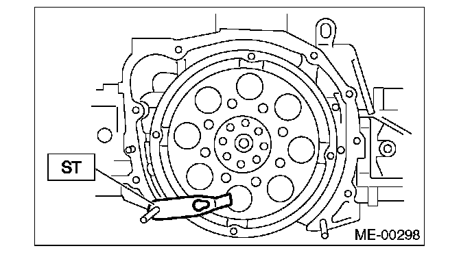11. Use the ST to lock the crankshaft, and remove the drive plate. (AT model)