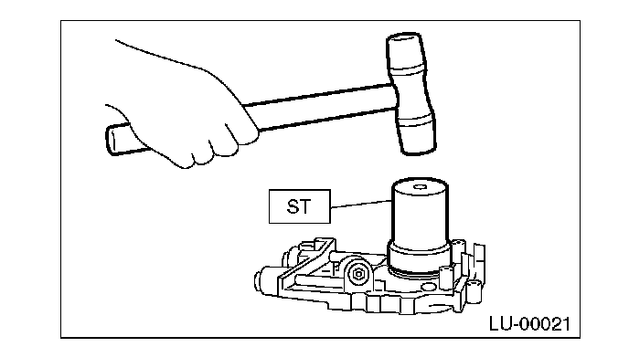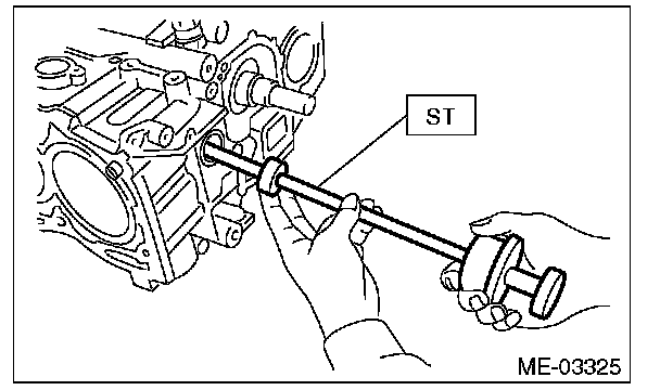 1. Install the front oil seal using the ST.