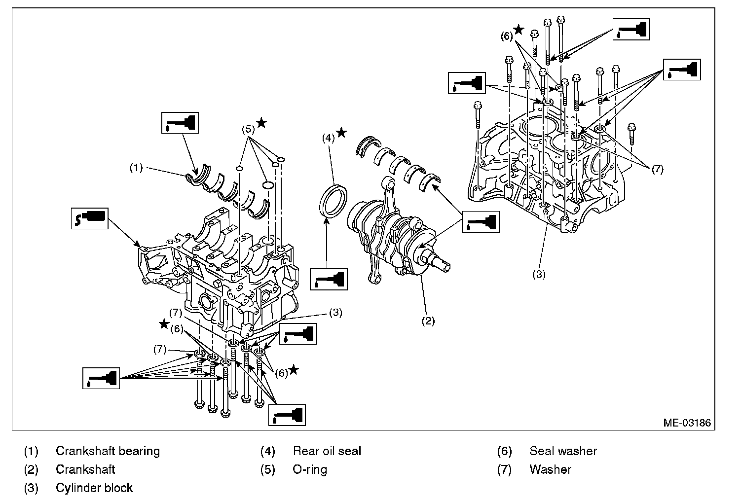 Liquid gasket: THREE BOND 1105 (Part No. 004403010) or equivalent