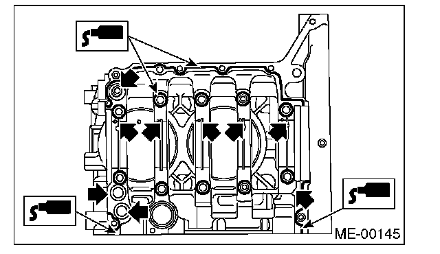 5. Tighten the 10 mm cylinder block connecting bolts on the LH side (A - D) in alphabetical order.
