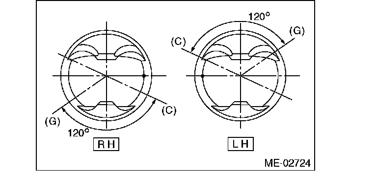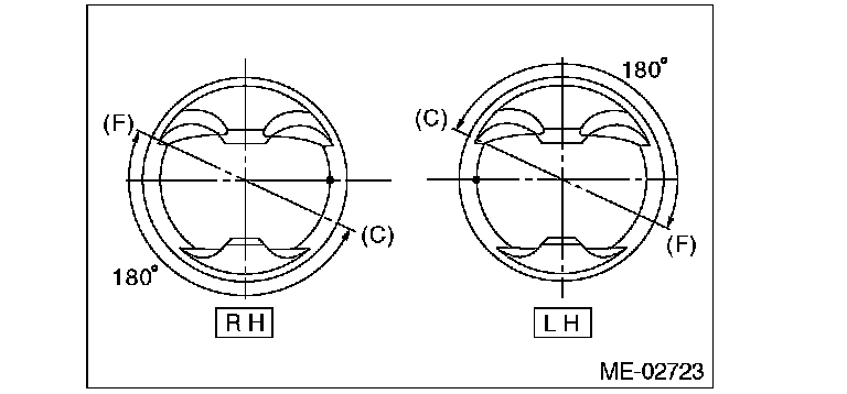 ^ Align the flat surface of oil pump degrees inner rotor with crankshaft before installation.