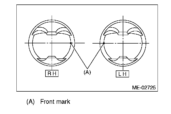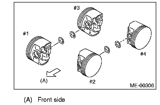 NOTE: Face the piston front mark towards the front of the engine.