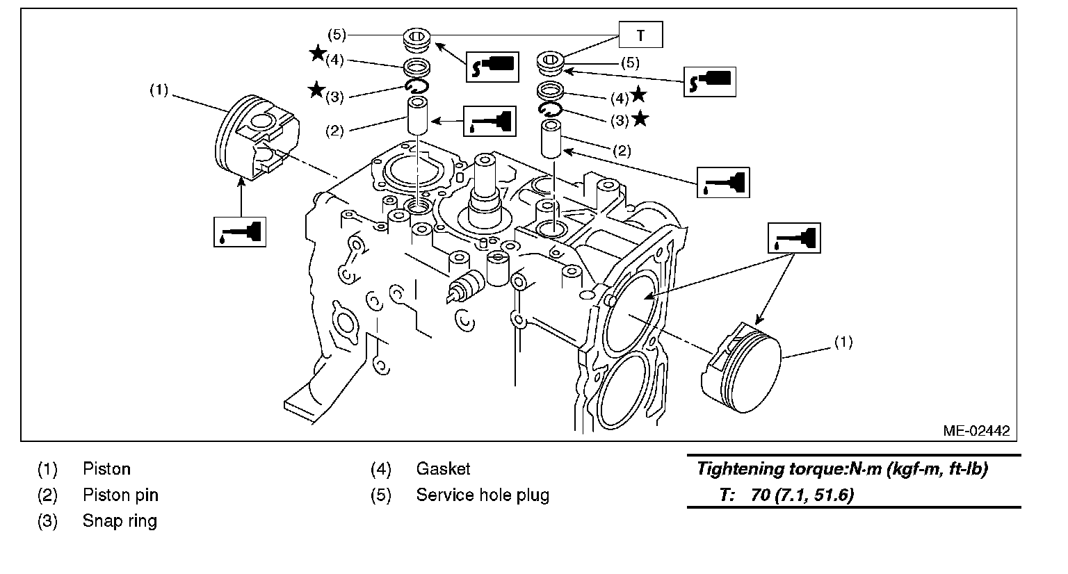 Tightening torque: 70 N-m (7.1 kgf-m, 51.6 ft-lb)