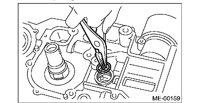 ^ Press the crankshaft bearing at the end opposite to locking lip to remove.