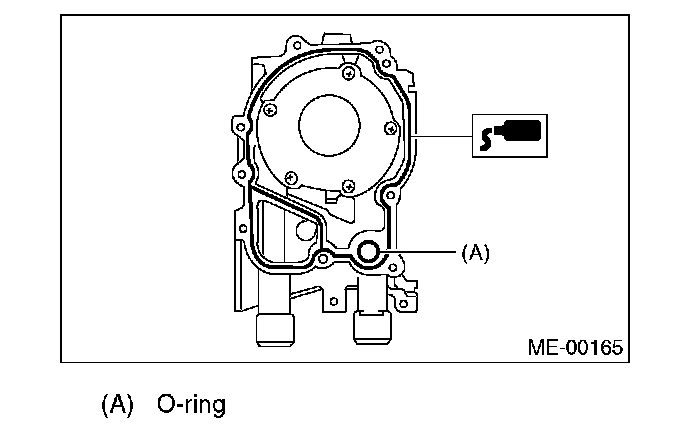 ^ Do not allow liquid gasket to jut into O-ring grooves, oil passages, bearing grooves, etc.