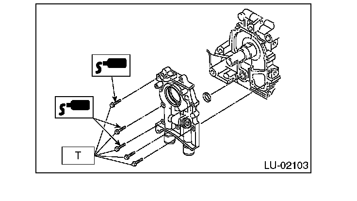 4. Install the oil pump to cylinder block. Be careful not to damage the oil seal during installation.