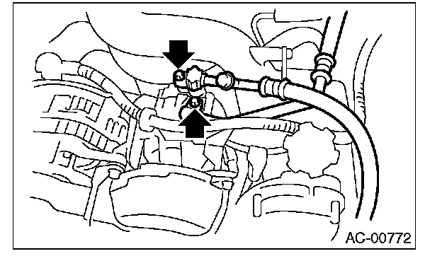 7. Remove the bolt and remove the low-pressure hose and high-pressure hose.