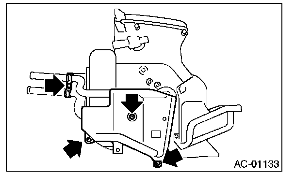 Remove the screws and remove the heater core cover and pipe clamp.