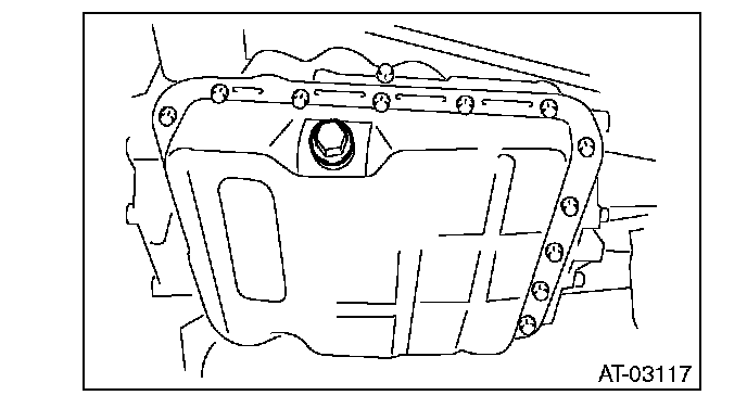 6. Install the oil pan by equally tightening the bolts.